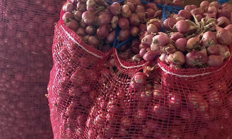Bawang merah bentuk bundar. Varietas unggul yang tahan dan cocok ditanam di cuaca hujan.