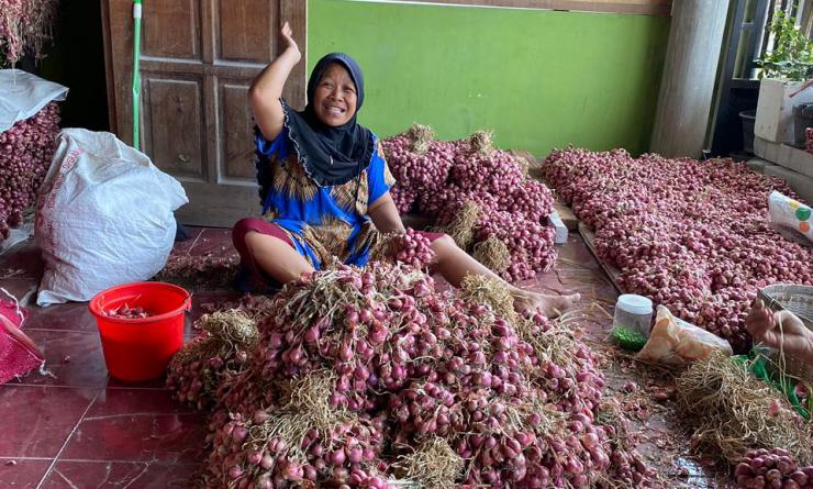 Bawang merah bentuk lonjong. Sangat adaptif dan tumbuh optimal meski di musim hujan.