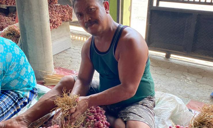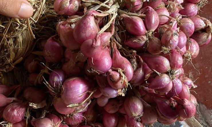 Bawang merah bentuk bundar. Varietas unggul yang tahan dan cocok ditanam di cuaca hujan.