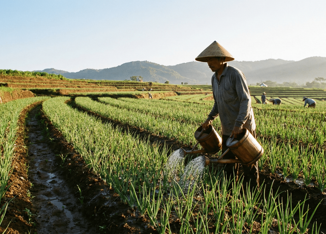 Bawang merah bentuk lonjong. Sangat adaptif dan tumbuh optimal meski di musim hujan.
